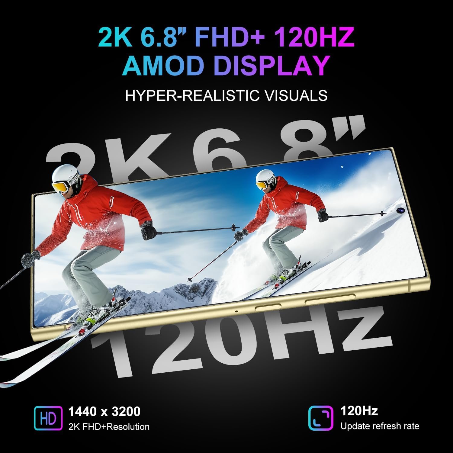 [6.8-inch full screen] The C24 Ultra unlocked phone has a 6.8-inch 3200 x 1440 resolution screen and 120Hz AMOLED display, advanced image processing technology, presenting stunning rich colors and captivating details that can provide vivid details and a screen-to-body ratio of 95%—equipped with Android 14.0 system and enjoying the security features of facial recognition and fingerprint recognition.