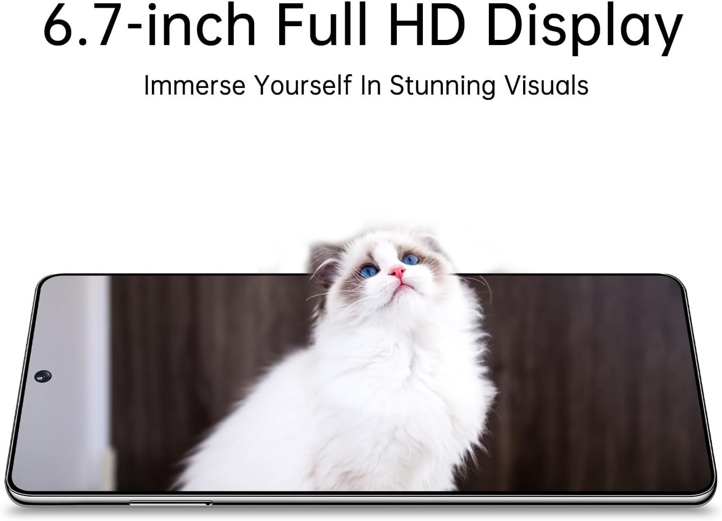 Immerse yourself in a visual feast on the expansive 6.7-inch HD LCD screen, boasting an impressive 95% screen-to-body ratio. Whether you’re watching movies, playing games, or browsing photos, enjoy vibrant colors and breathtaking clarity that bring every moment to life.